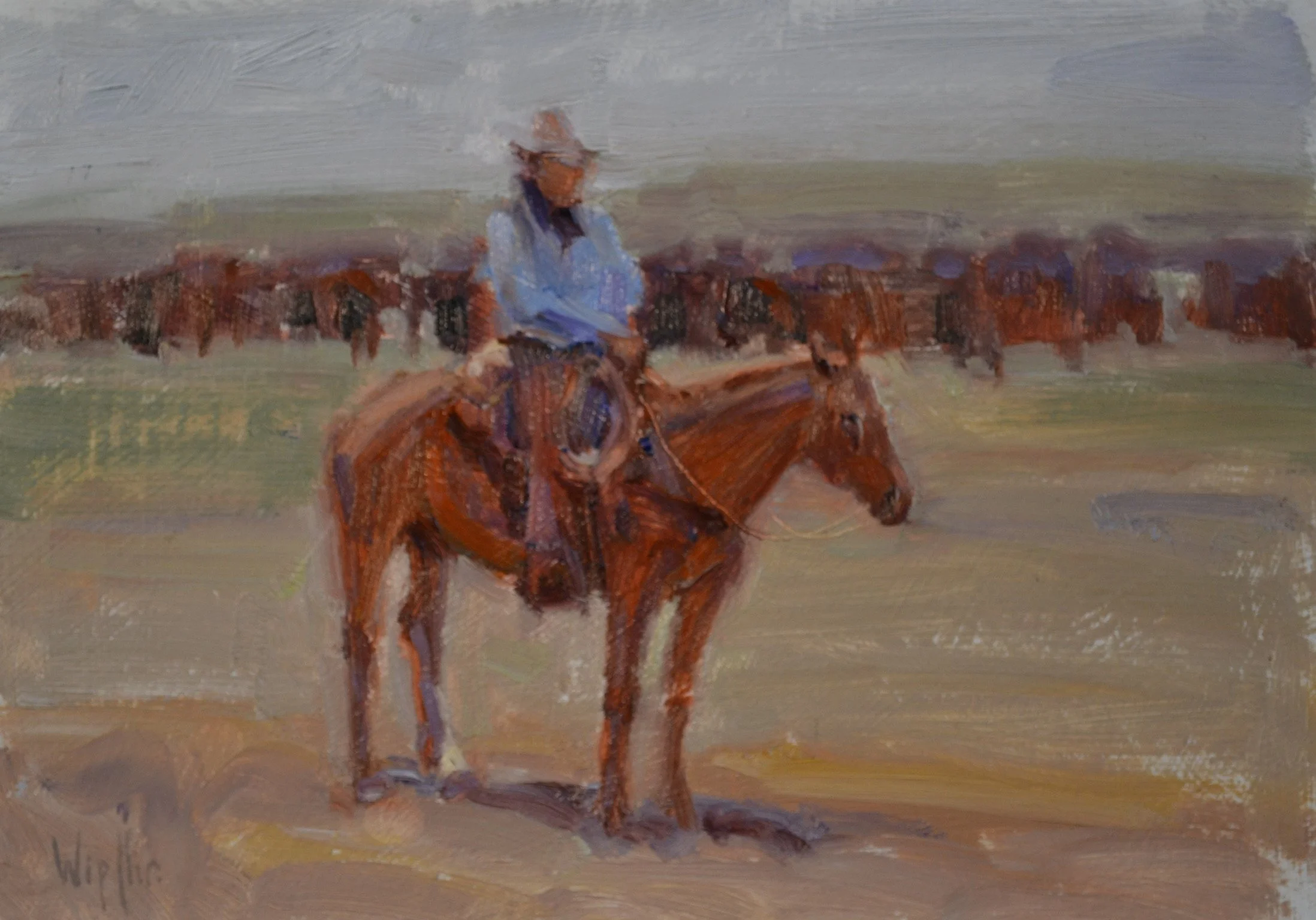 She moved to Jackson, Wyoming in 1980 to focus on painting from life and was mentored by influential Western artists including John Clymer, Conrad Schwiering, Hollis Williford, William Reese, and Skip Whitcomb. Over the years, her close connections with local homesteading families and working cowboys have deeply informed her understanding of western life.
